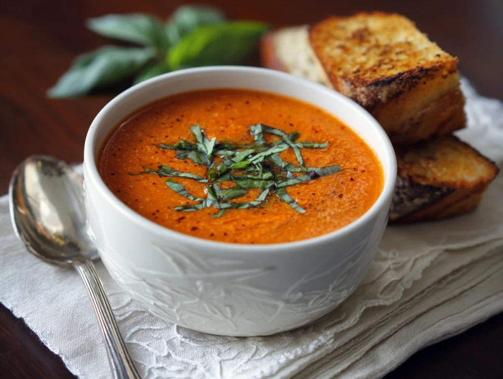 Chef’s Technique: Roast tomatoes and garlic for caramelized sweetness before blending.