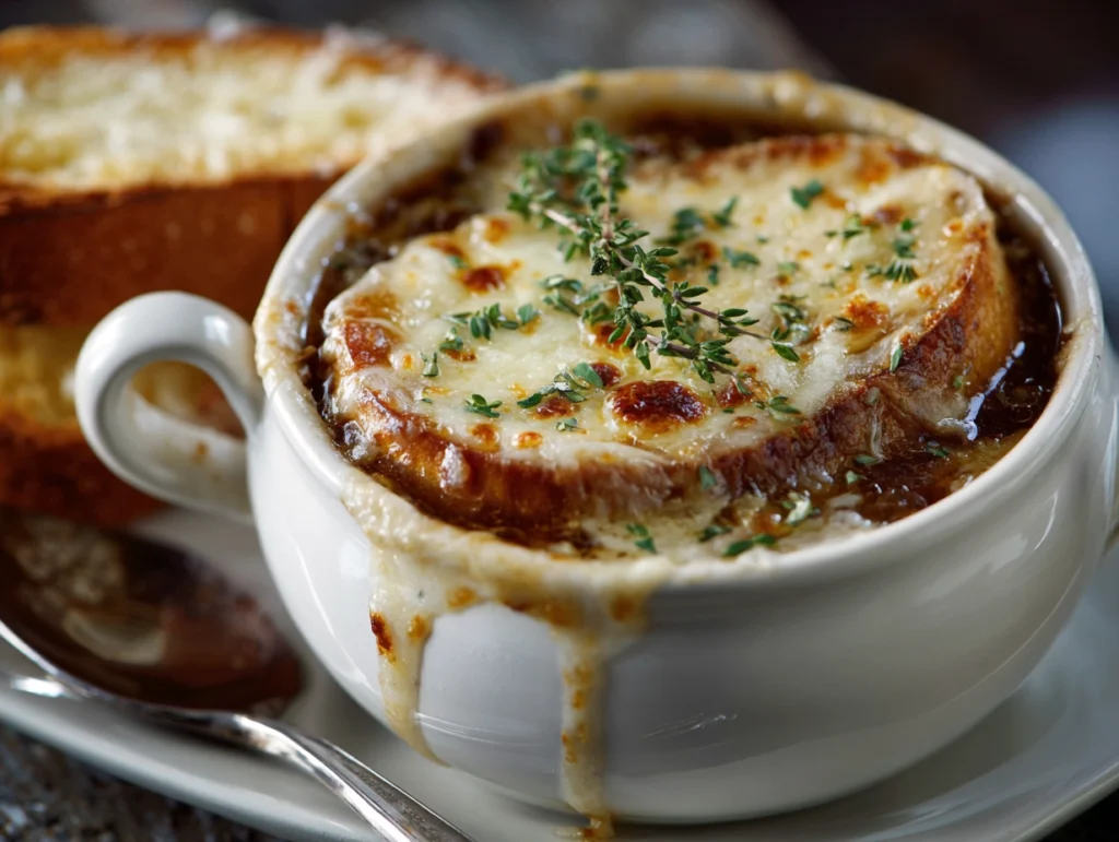 Why it’s healthy: Caramelized onions are antioxidant-rich and naturally sweet, reducing the need for excess sugar. The broth provides minerals, while the bread and cheese topping add indulgence without overloading.