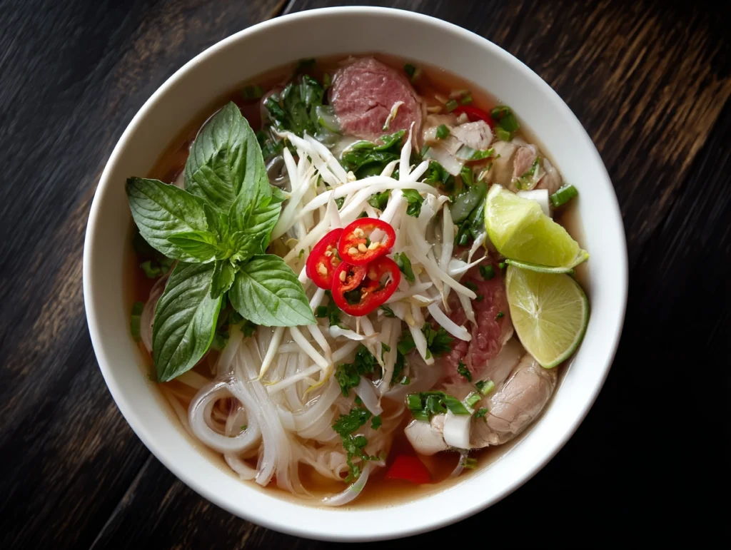 Why it’s healthy: Pho broth is rich in minerals and collagen, while rice noodles provide easy-to-digest carbs. Fresh herbs and lime brighten the dish, making it both restorative and refreshing.